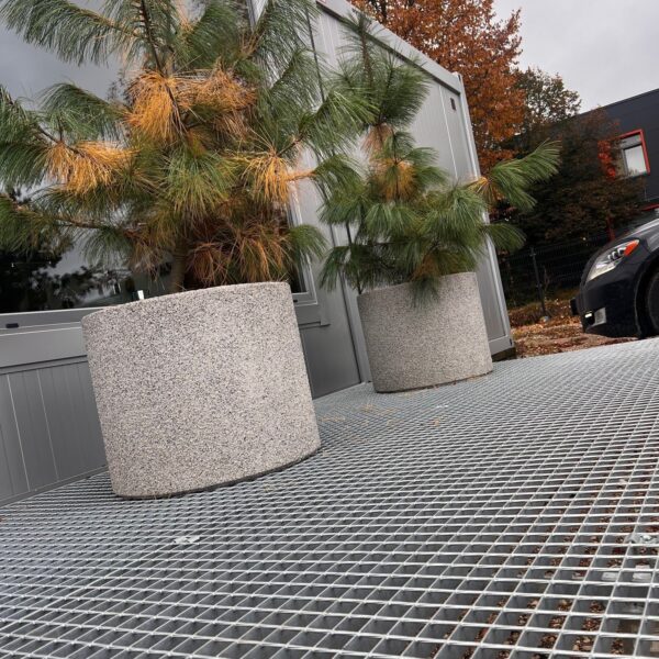 Betoninė šiukšliadėžė FB004 KUBA H su akmenukų apdaila.