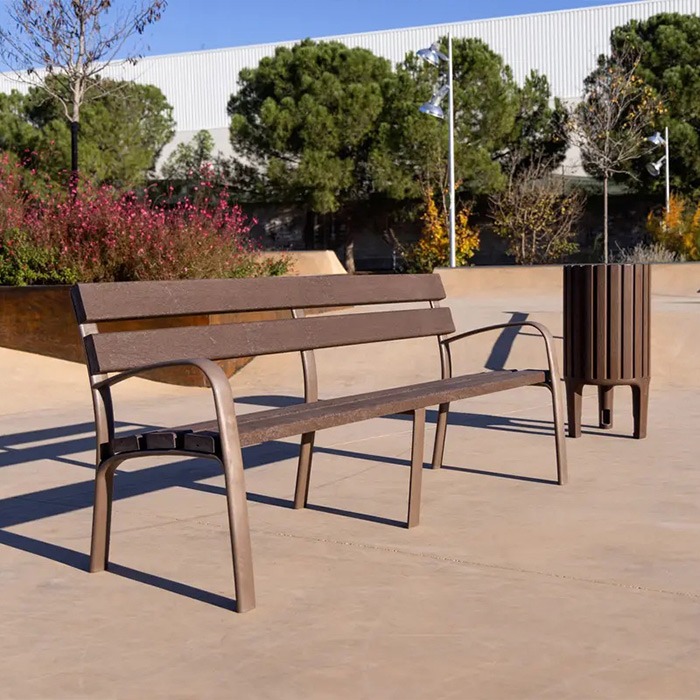 „EcoCity“ šiukšliadėžė, pagaminta iš didelio tankio polietileno (HDPE), yra pagaminta iš perdirbtų medžiagų, rudos spalvos, apdorota UV spinduliais, su maišelių laikymo žiedu. Medžiagos: Korpusas: didelio tankio polietilenas (HDPE), pagamintas iš perdirbtų medžiagų, sumaišytų su buitinėmis atliekomis, surinktomis iš pramonės ir žemės ūkio sektorių. Žiedas ir plokštės: nerūdijantis plienas. Charakteristikos: ekologiška ir perdirbama. Apsaugotas nuo grafičių ir lengvai valomas. Nereikalauja priežiūros. Ekonomiškas ir patvarus. Apdorotas UV spinduliais. Labai tvirtas. Tvirtinimas: naudojant 3 T-11L M8x80 mm varžtus.