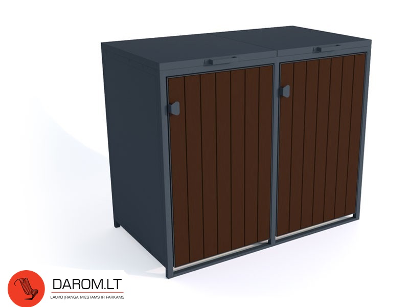 Konteinerių saugykla pagaminta iš cinkuoto plieno 1,5 mm. storio, dažyto milteliniu būdu pagal RAL paletę, arba iš nerūdijančio plieno.
