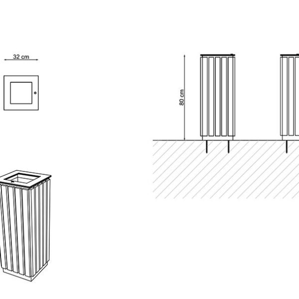 Šiukšliadėžės matmenys: 400x300x950h mm. |Vidinio cinkuoto kibirėlio matmenys: 340x250x670h mm. Talpa 55L.