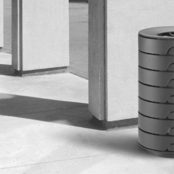 Metāla atkritumu kaste OLBIA. Elipses formas. Ar slēdzeni. Atliekos noņemamas no sāniem. Uzstadīta uz betona vai metala pamatnes.