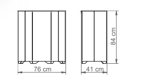 Ilgis: 76 cm Aukštis: 84 cm Plotis: 41 cm Svoris: 60 kg Tūris: 130 L