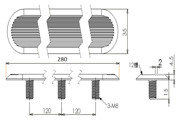 – paralēlas joslas (4-5 mm augstuma, 25 mm platuma, 280 mm garuma, novietotas ik pēc 40-60 mm), paredzētas kustības virzienam vai virziena izmaiņai atzīmēt;