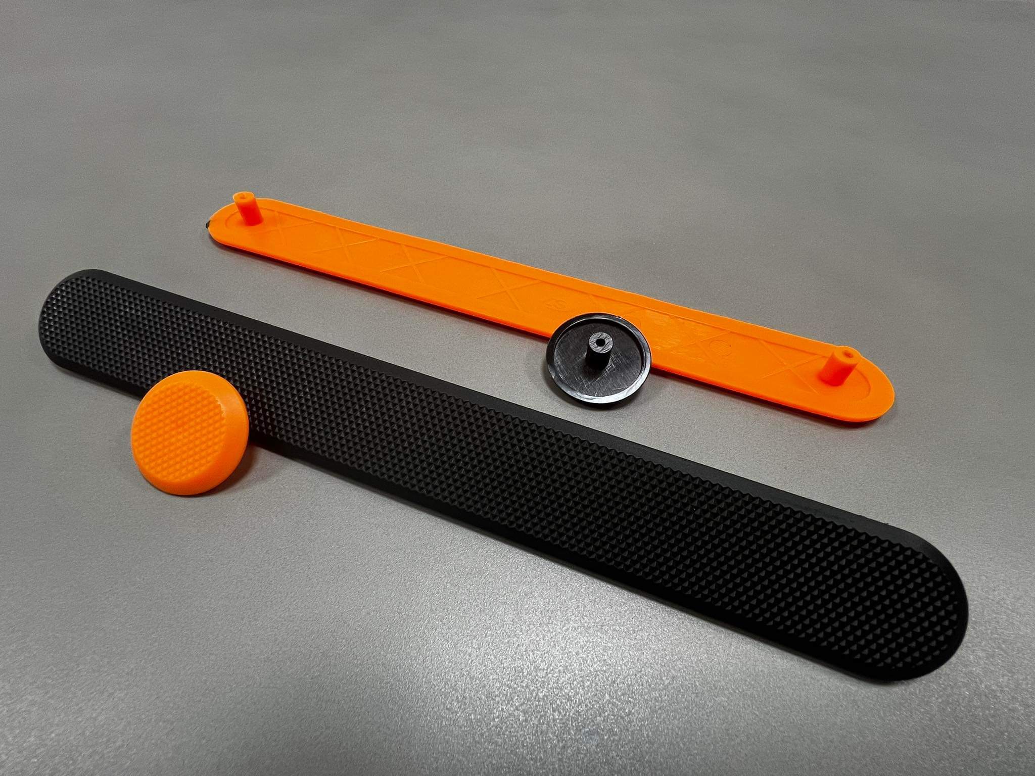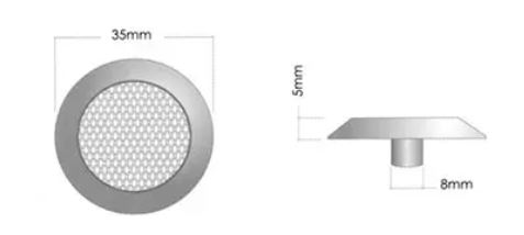 Matmenys: 35mm x h 5mm. Kojos diametras – 8 mm. Gaminiai gali būti klijuojami arba įgrežiami / įkalami į kietą paviršių