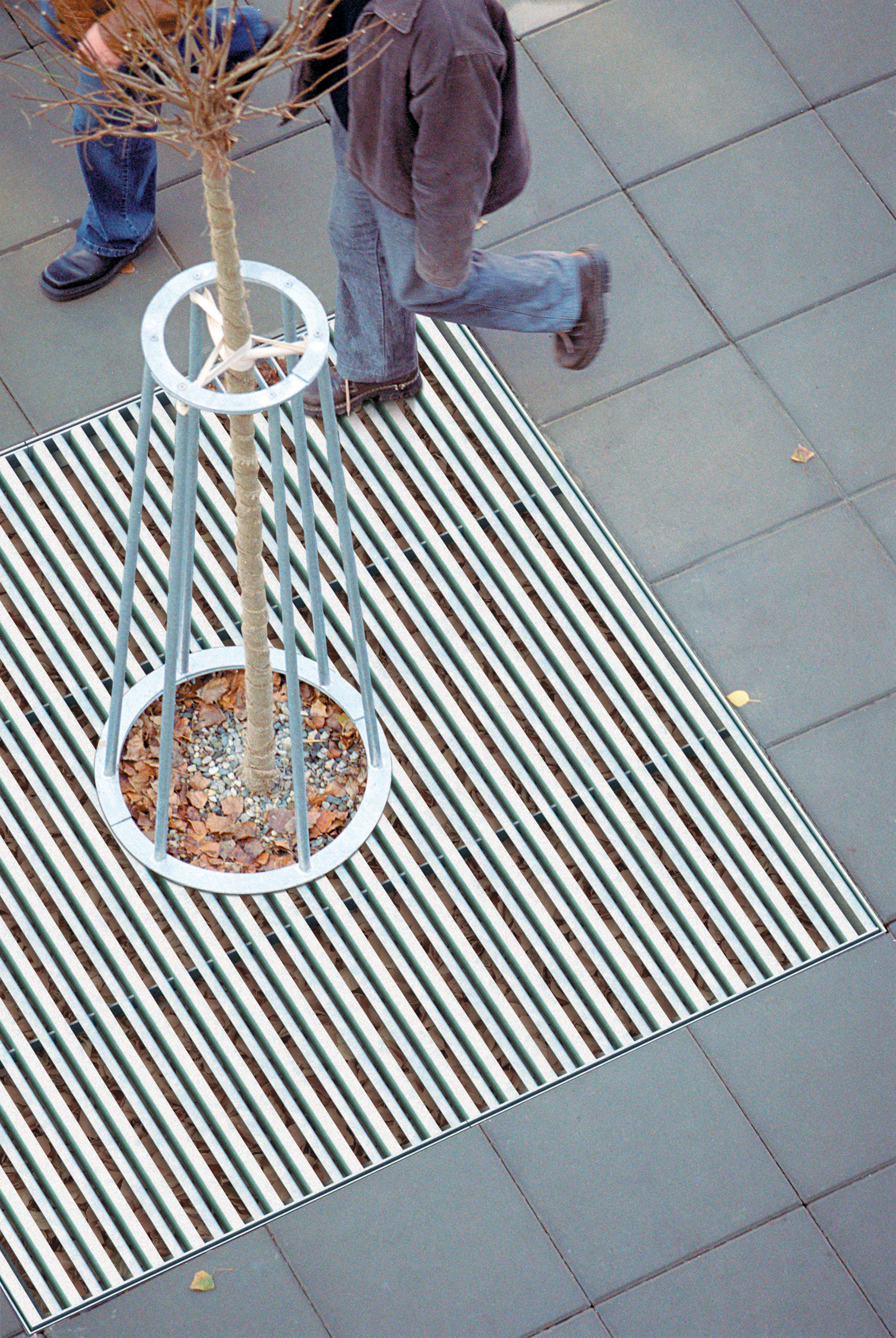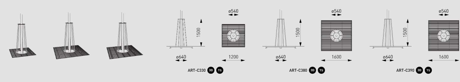 Karštai cinkuoto plieno konstrukcija, nedengta milteliniu būdu. Kartu su medžio grotelėmis pateikiamas tvirtinimo pagrindo rėmas.