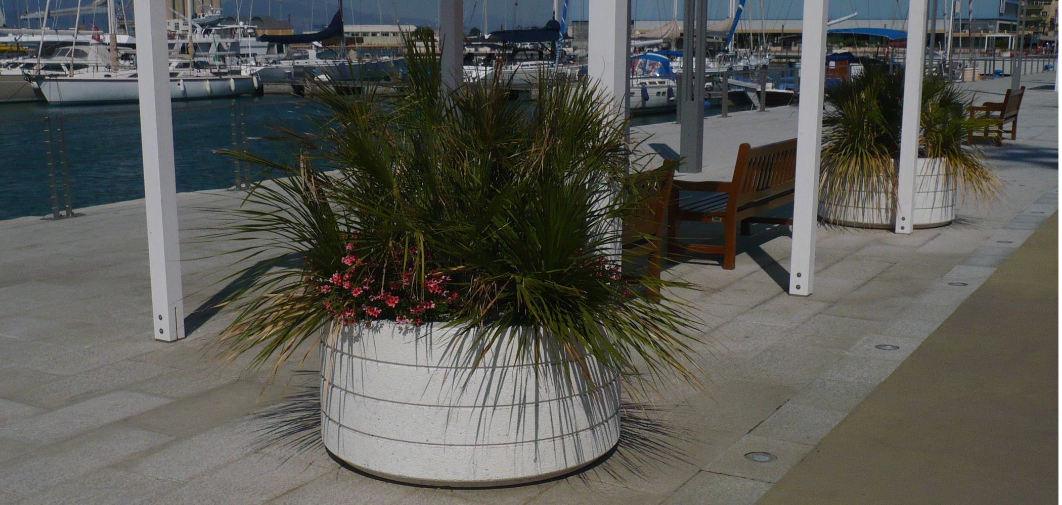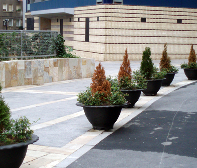 Betona puķu kaste – atkritumu kaste FB001 SMIS su akmeņu apdaila