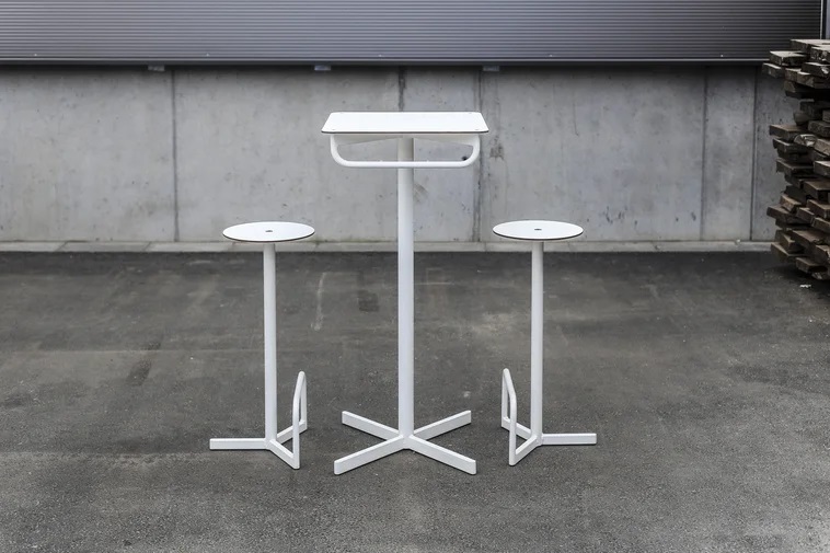 Medžiagos: plieninė konstrukcija, padengta apsaugine cinko danga ir milteliniais dažais + stalviršis pagamintas iš medienos arba aukšto slėgio laminato (HPL)