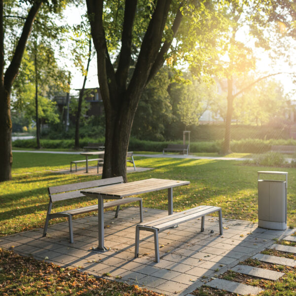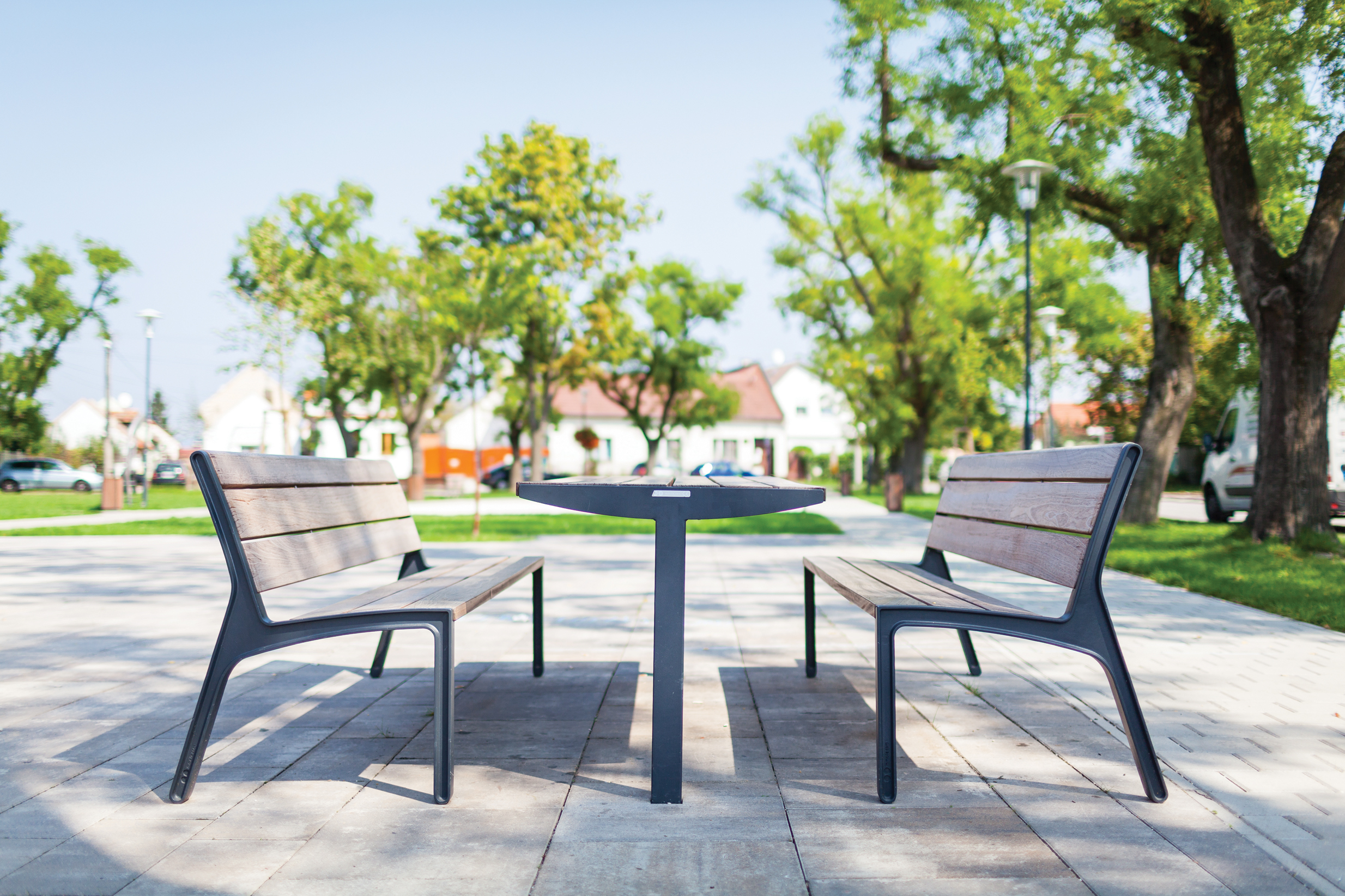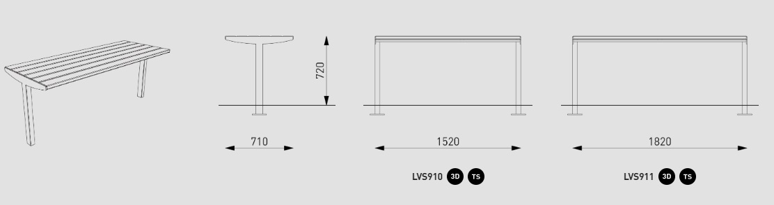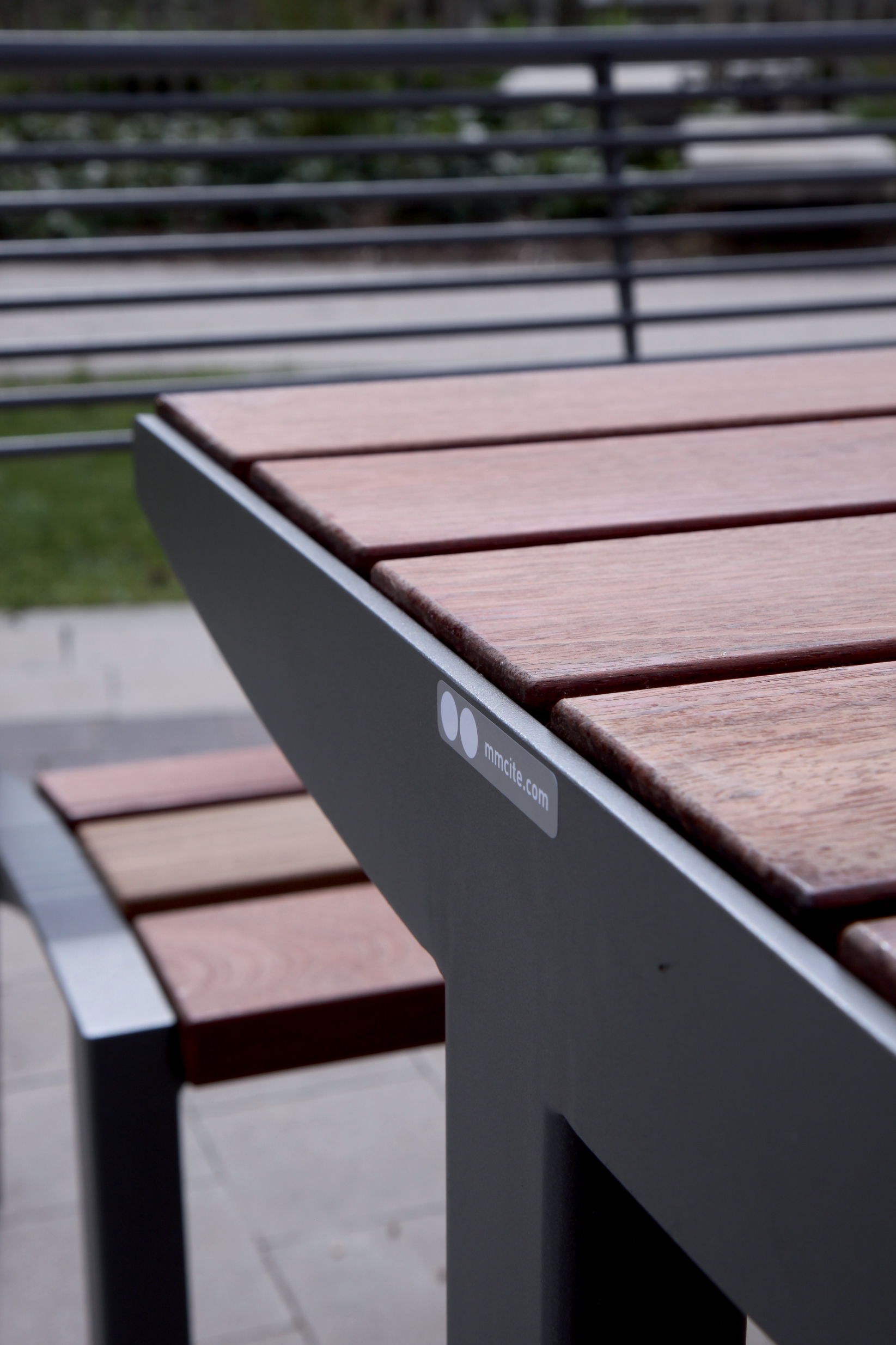 Lauko stalas Vera Solo. Pagamintas iš karštai cinkuoto, kurio sluoksnis 50 – 80 µm, ir milteliniais dažais dengto plieno stačiakampių vamzdžių ir lakštų. Plieno klasė S235JR. Gaminio medinė dalis pagaminta iš 6-ių lentų. Lentos pritvirtintos prie korpuso nerūdijančio plieno varžtais. Plieno spalvą galima rinktis iš gamintojo RAL paletės.