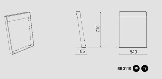 Matmenys 540 x185 x 710 h mm.