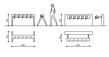 Matmenys: L 1700 mm H 850 mm P 760 mm (37kg); P 485 mm (27kg)