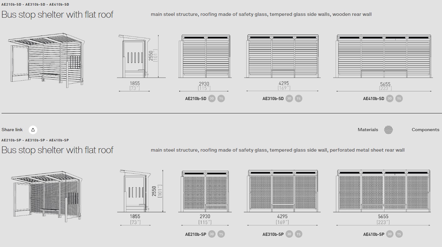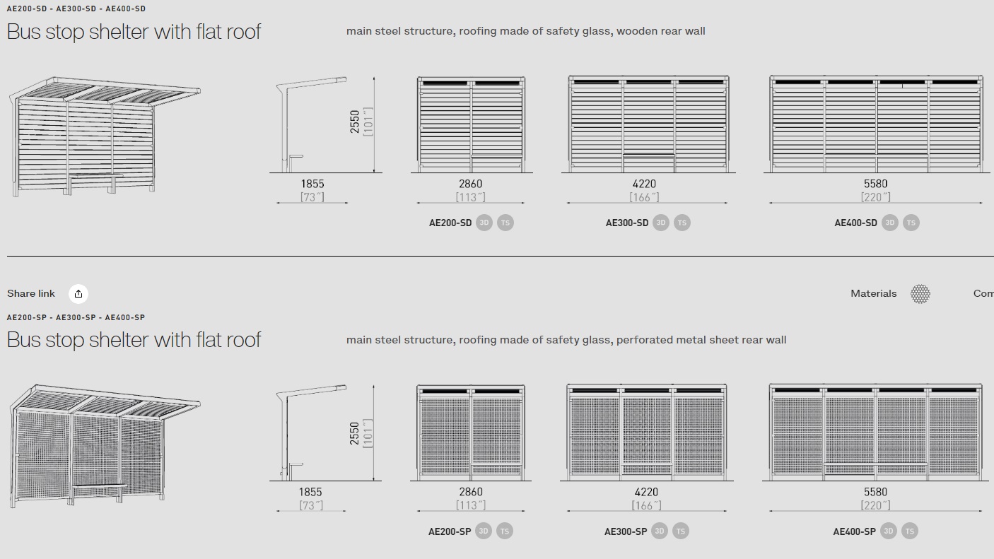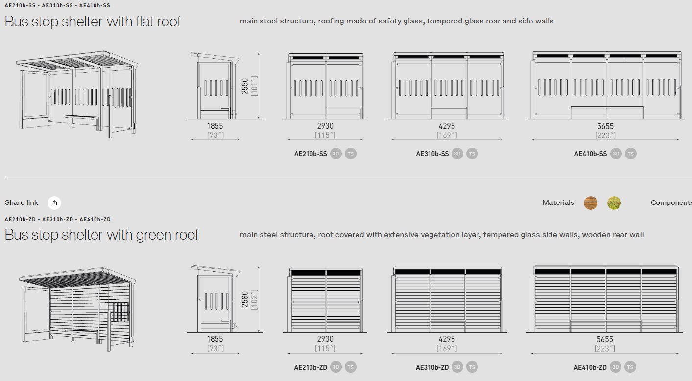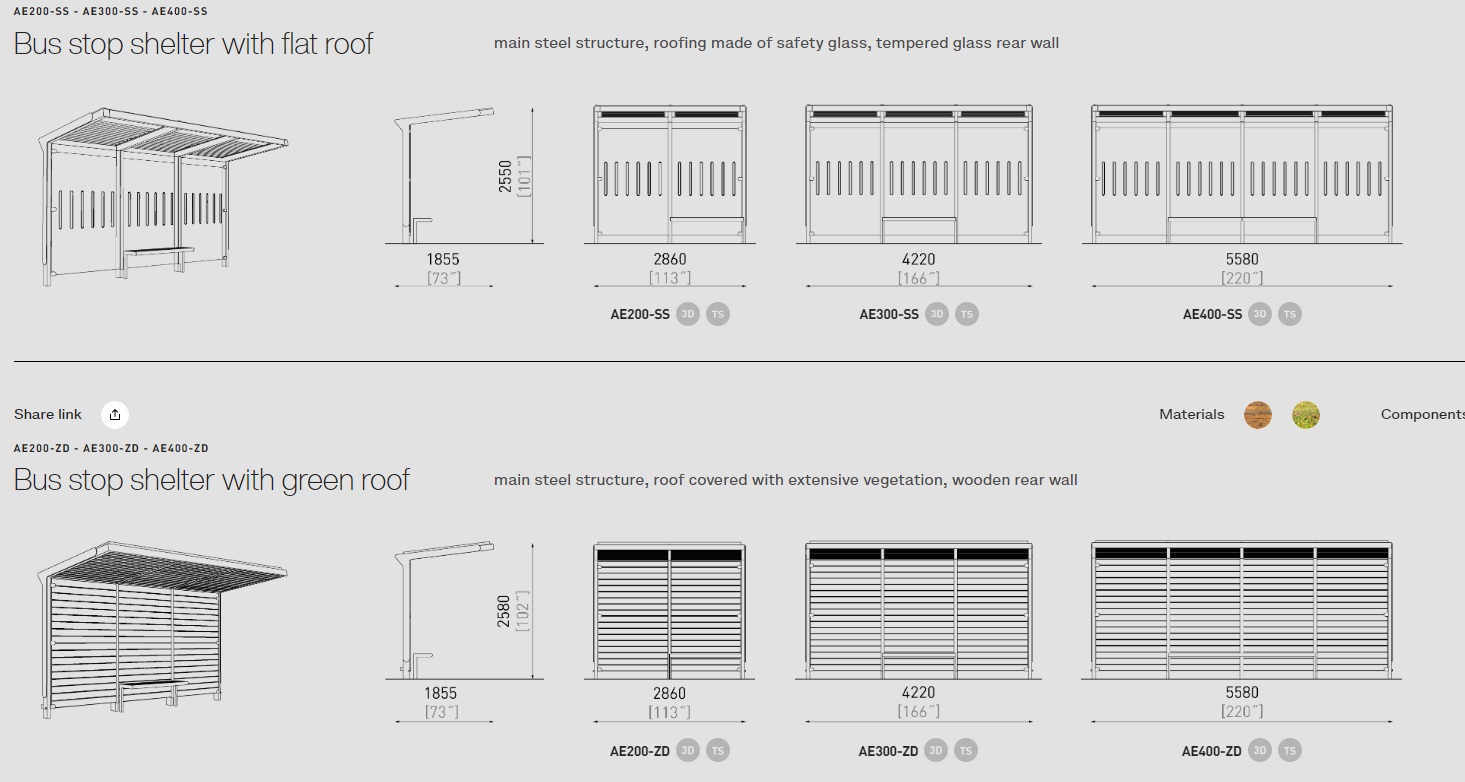 Šim autobusa gaidīšanas paviljonam ir vairāk nekā 50 modifikācijas. Autobusa pieturas ir dažādu izmēru, materiālu un funkciju. Krāsas pēc RAL paletes. Aureo ne tikai perfekti veic savu galveno funkciju, bet arī rotā vidi. Var tikt komplektēts ar citiem mazās arhitektūras elementiem no MMcite Aureo sērijas.