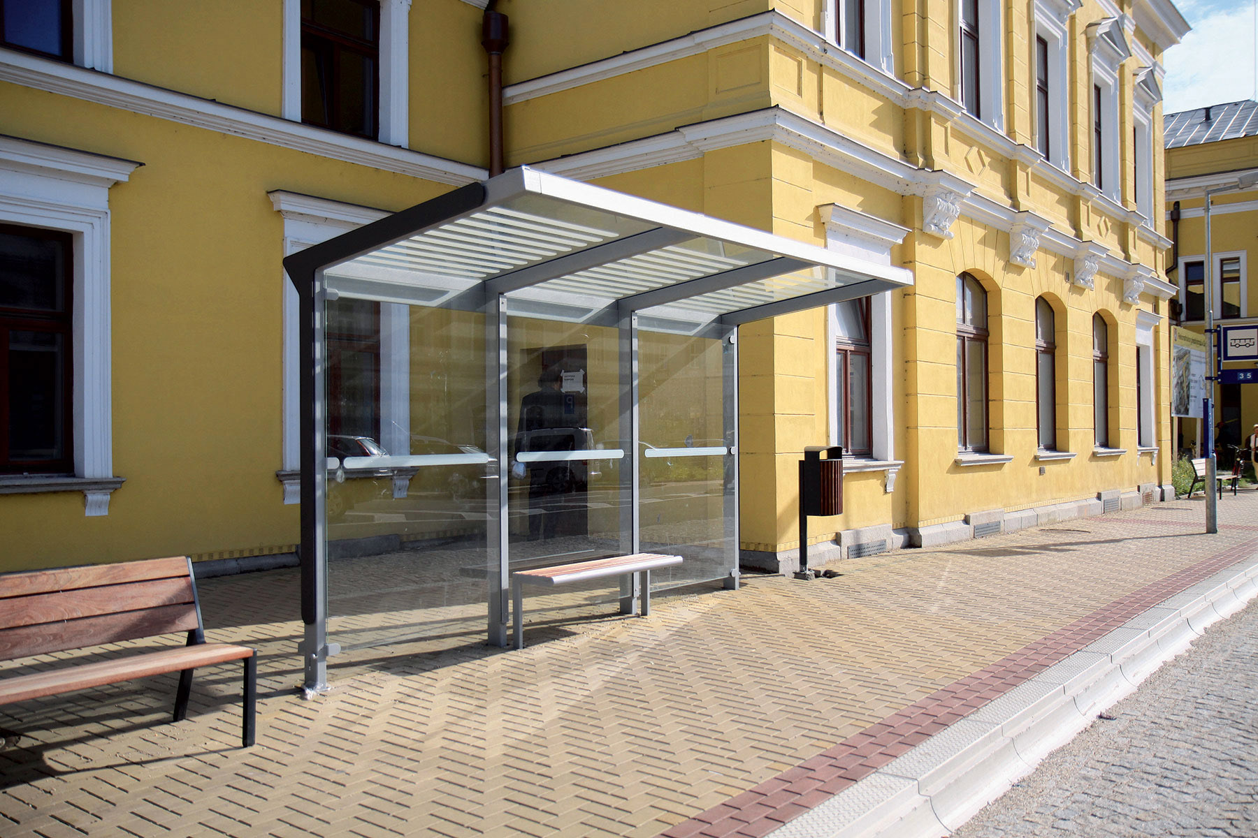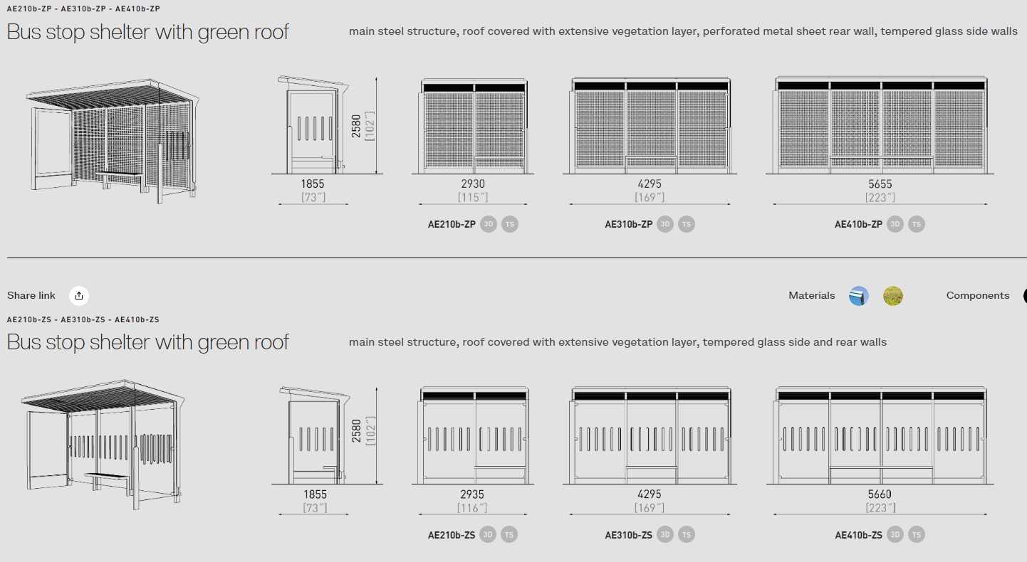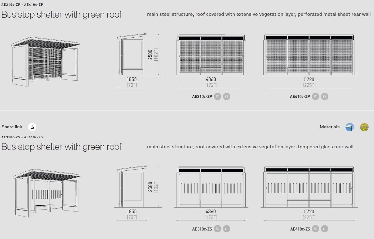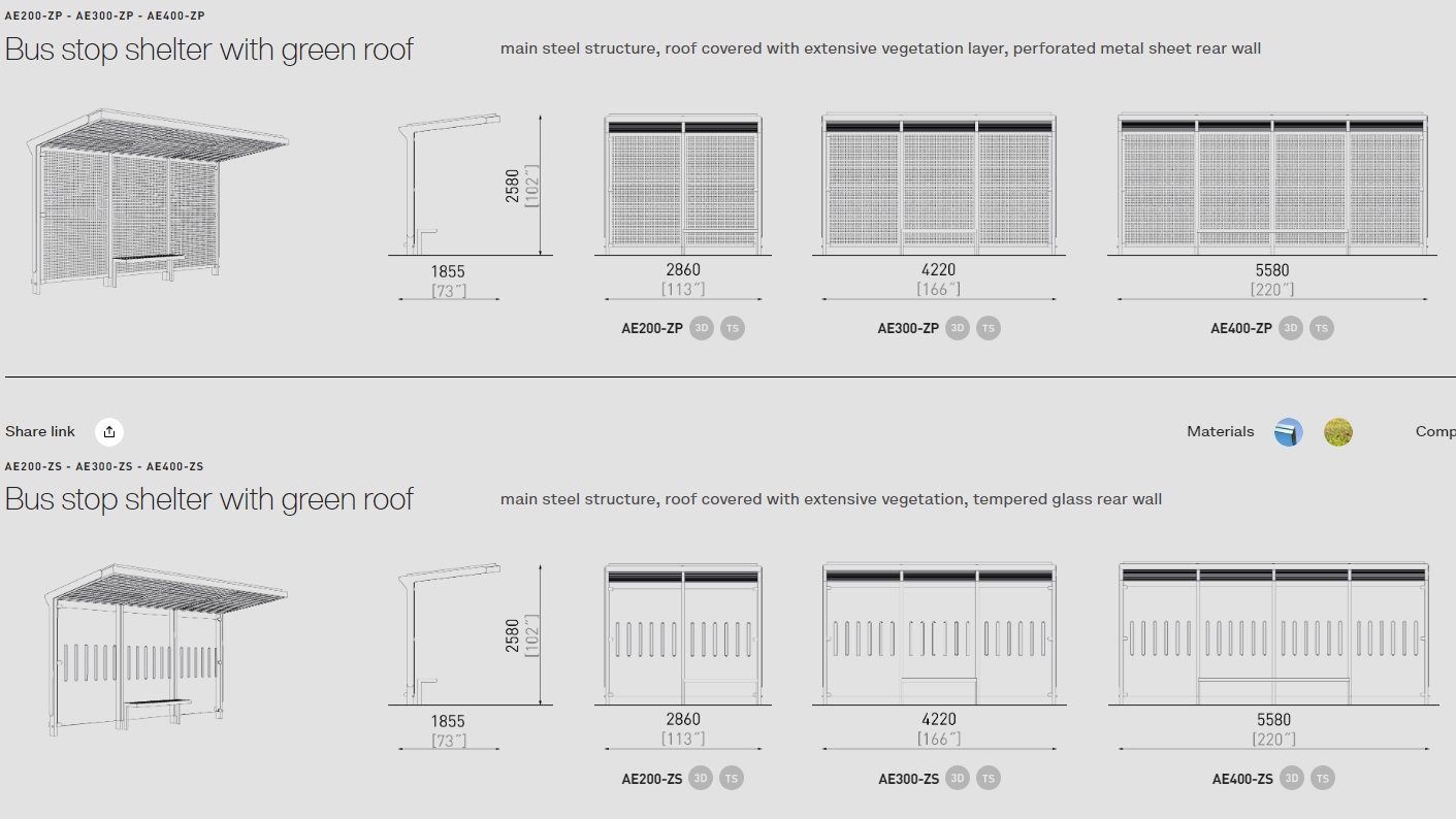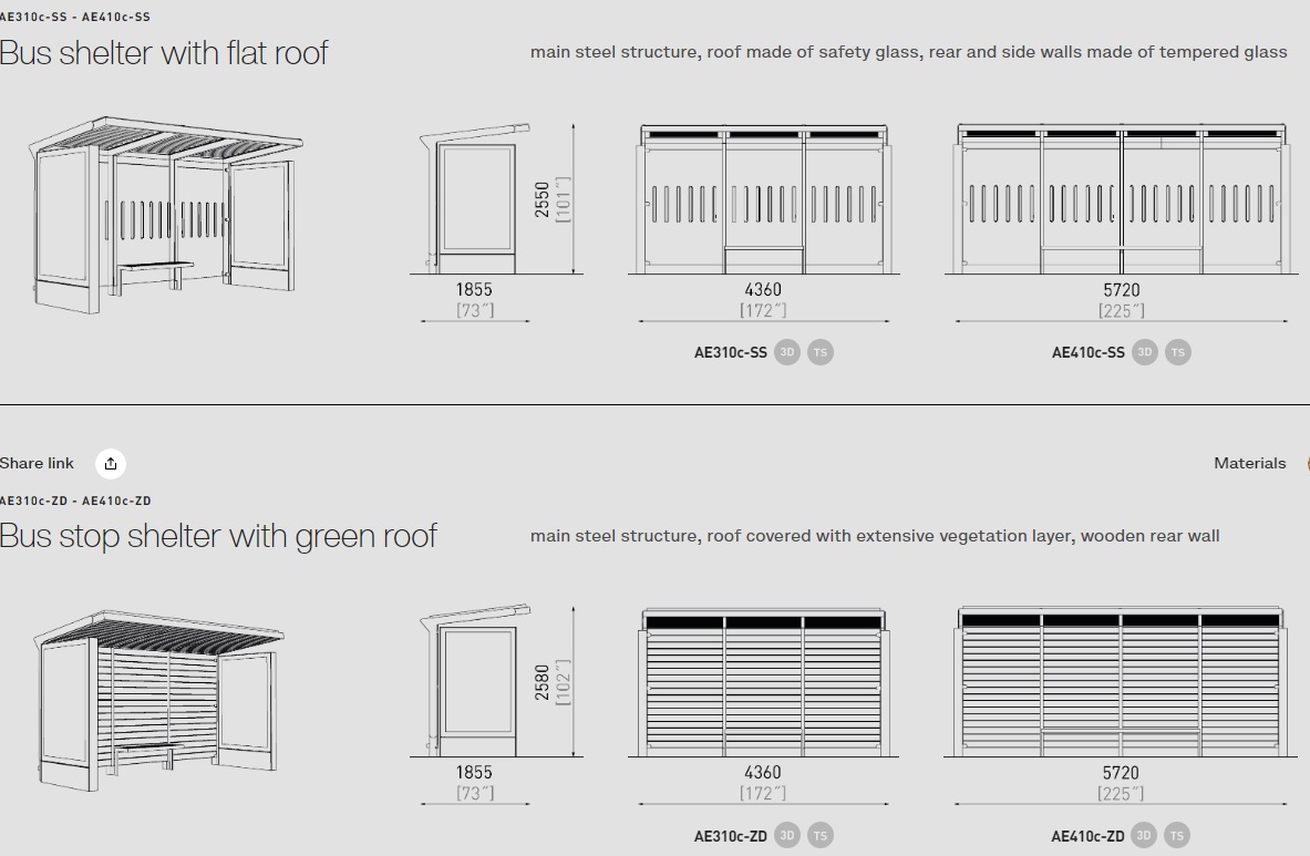 Šim autobusa gaidīšanas paviljonam ir vairāk nekā 50 modifikācijas. Autobusa pieturas ir dažādu izmēru, materiālu un funkciju. Krāsas pēc RAL paletes. Aureo ne tikai perfekti veic savu galveno funkciju, bet arī rotā vidi. Var tikt komplektēts ar citiem mazās arhitektūras elementiem no MMcite Aureo sērijas.