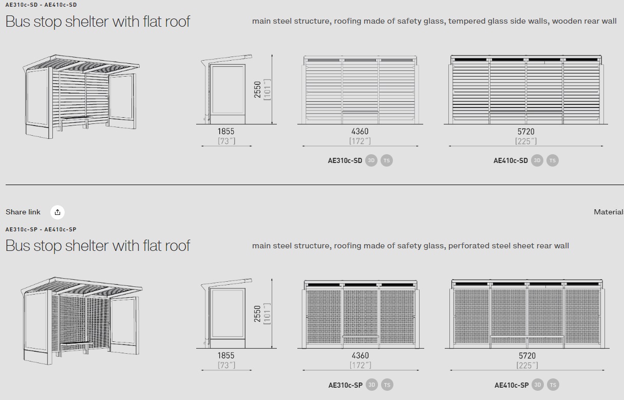 Tehniskās specifikācijas sniedzam, zinot konkrēto interesējošo autobusa gaidīšanas paviljonas modeli.