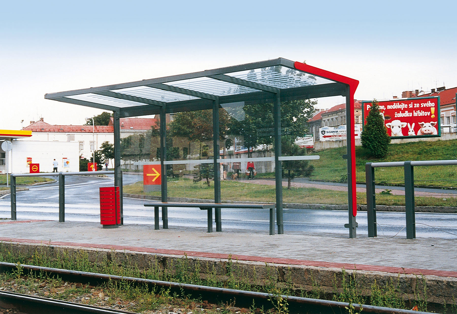 Autobusa gaidīšanas paviljonas Aureo.