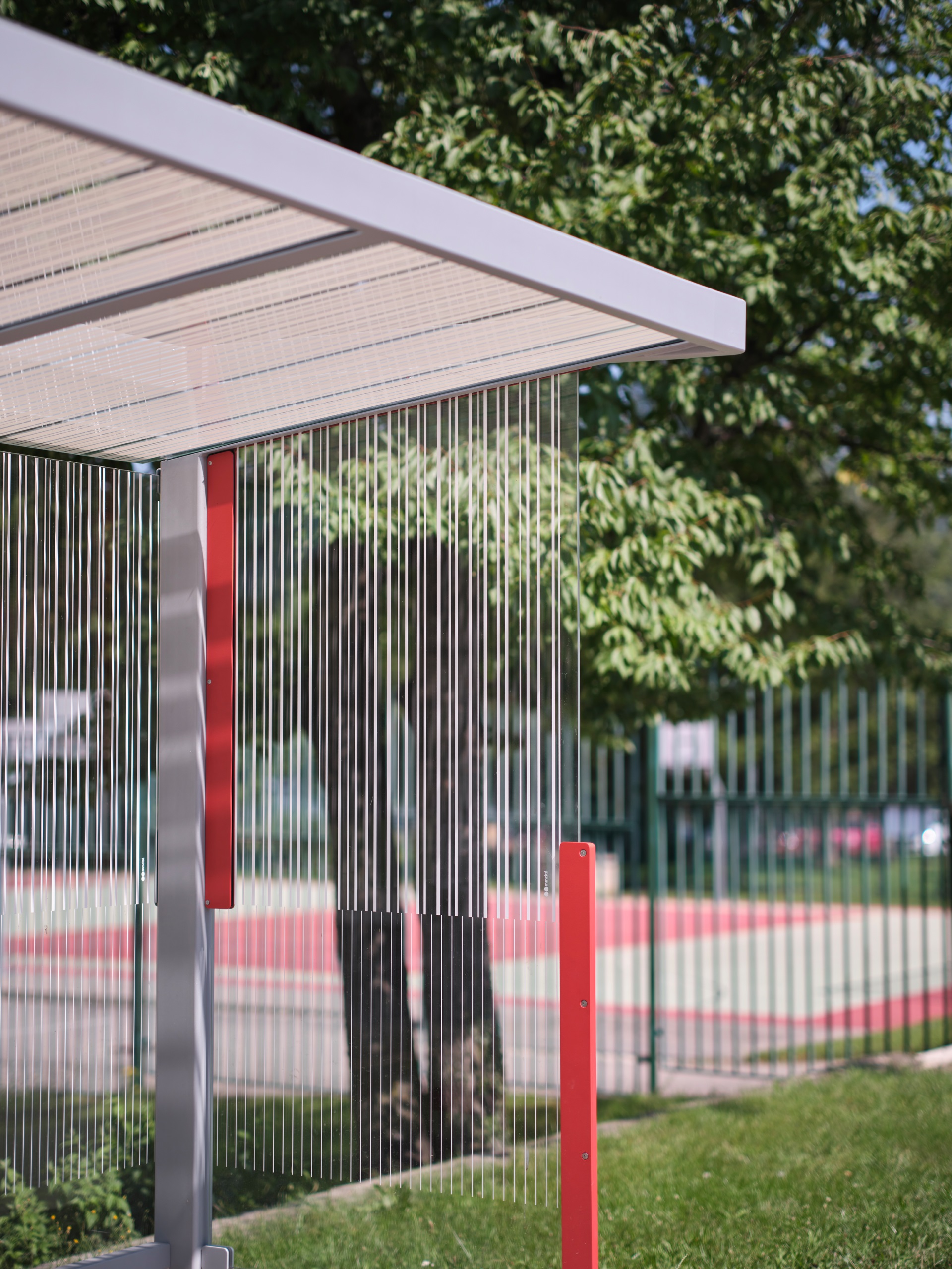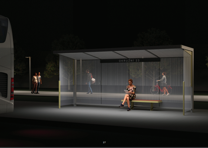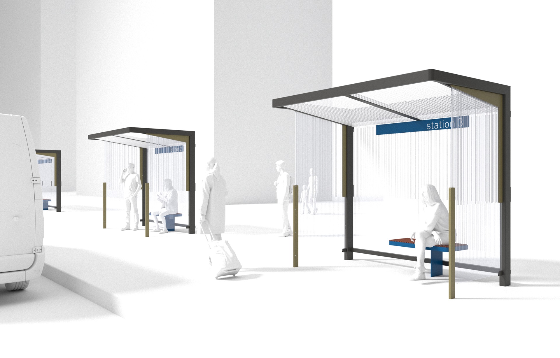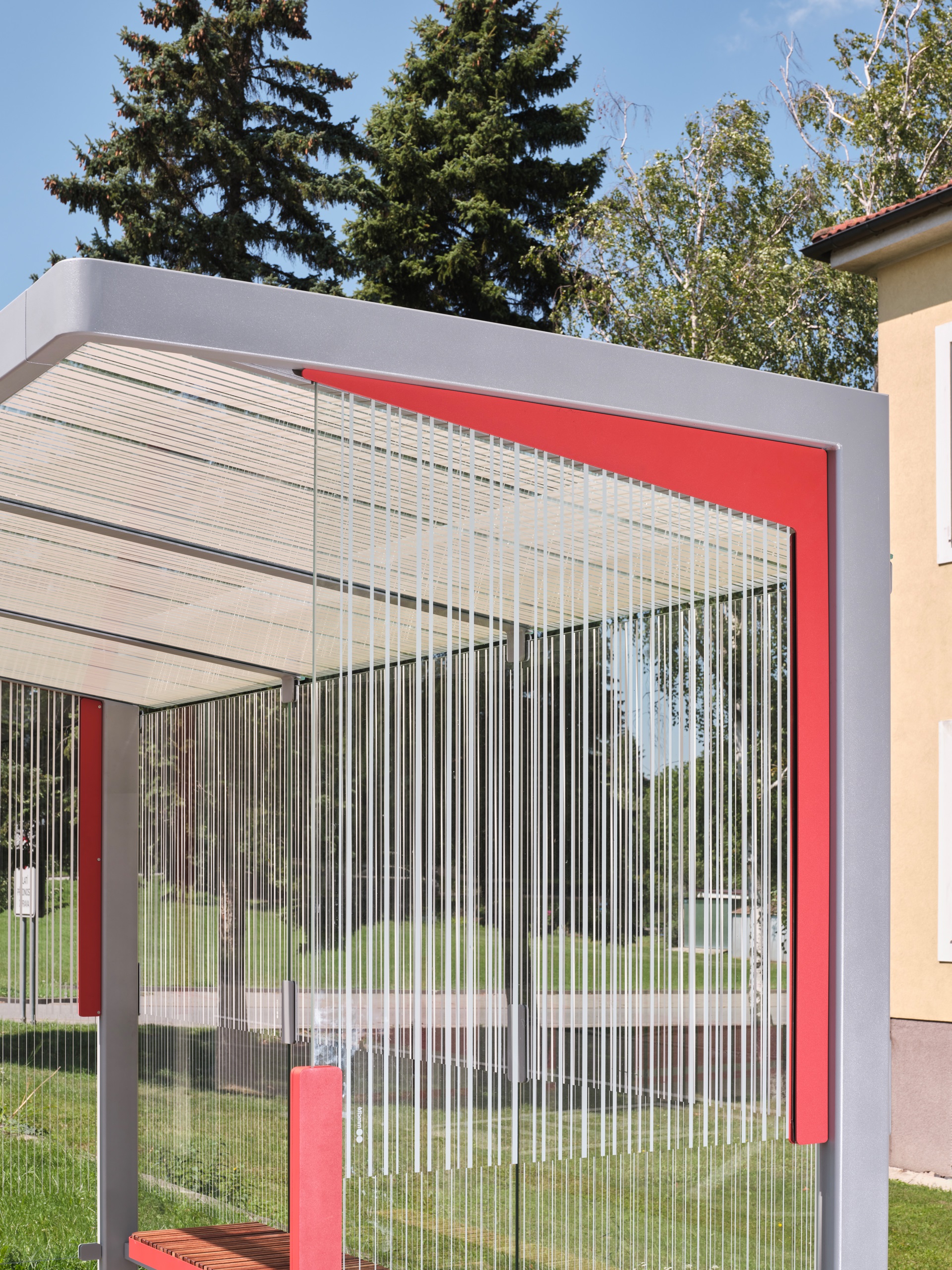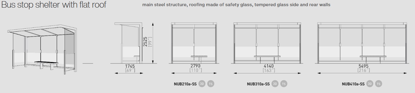 Ši moderni stiklinė stoginė – stilingas ir funkcionalus bet kurios miesto aplinkos priedas. Visiškai stiklinį paviršių supa plieno konstrukcija su subtiliai užapvalintais kampais, kuri sukuria elegantišką ir minimalistinę estetiką. Pieno spalvos stogas sklandžiai apsaugo nuo saulės, o galimybė ant pastogės sienelių naudoti subtilią grafiką gali suteikti asmeniškumo. Galimos dviejų arba keturių kojų versijos, todėl pastogė tinka įvairioms vietoms, įskaitant tas, kuriose yra didesnė sniego ir vėjo apkrova. Dvipusė versija suteikia pastogę skirtingomis kryptimis važiuojantiems keleiviams. Joje integruotas suoliukas, kurio plieninę konstrukciją galima nudažyti ir suteikti pastogei spalvinį akcentą. Papildomos funkcijos – ant stogo įrengtos fotovoltinės plokštės ir USB jungtys prietaisams įkrauti.