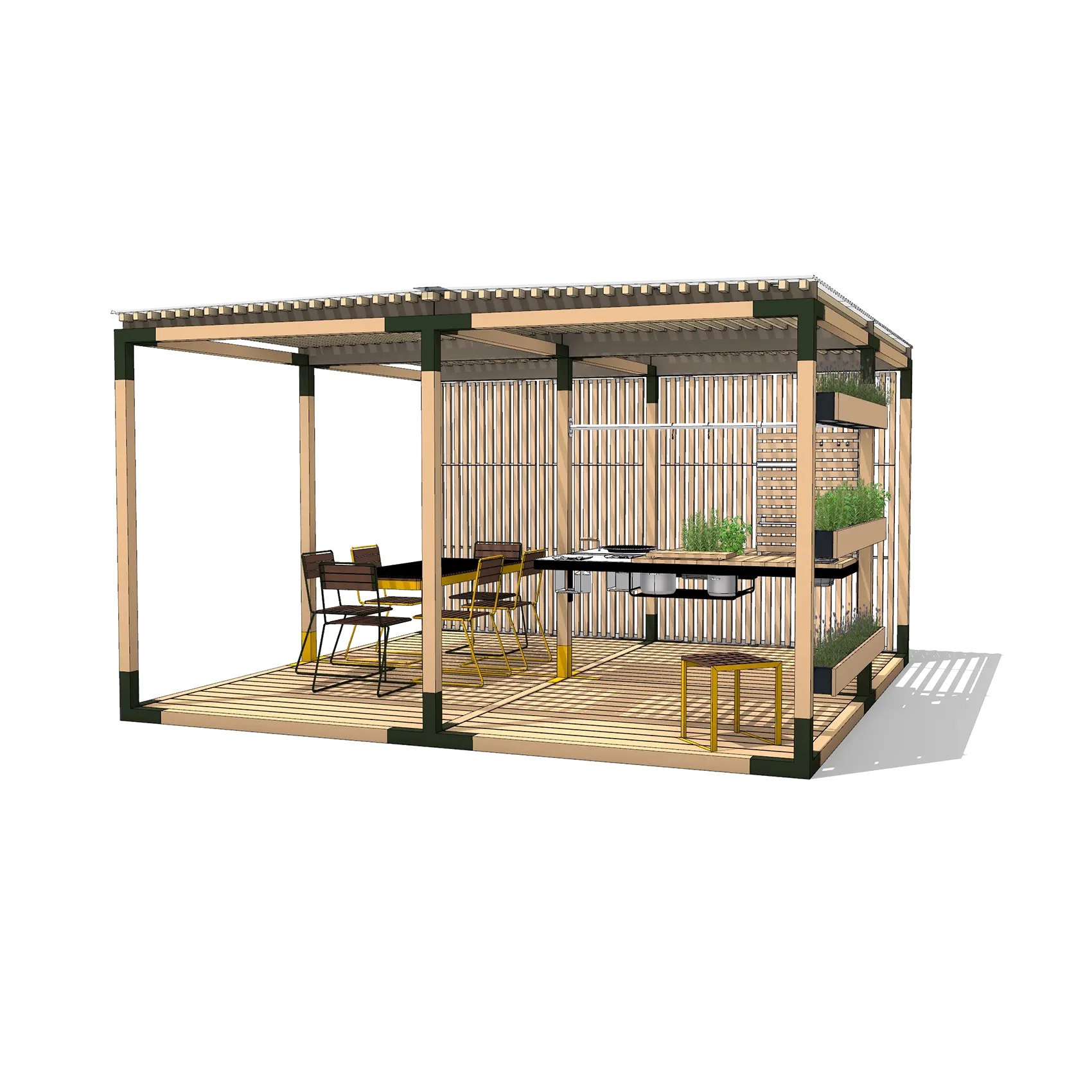 Velosipēdu nojumes ar zaļiem jumtiem