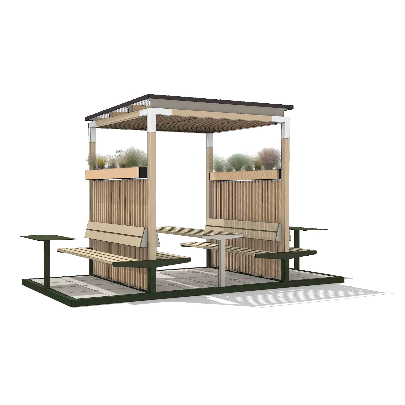 Pieturas ar USB, apgaismojumu un saules bateriju jumtu
