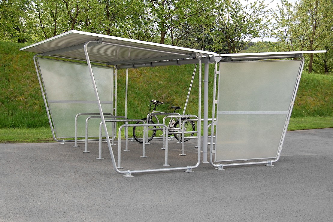 - Reguliuojamos stoginės – tai modernūs sprendimai, leidžiantys reguliuoti stoginės stogo padėtį pagal saulės kampą arba oro sąlygas. Pavyzdžiui, galima pasirinkti stoginę su automatiškai judančiomis lamelėmis, kurias galima valdyti nuotoliniu būdu.