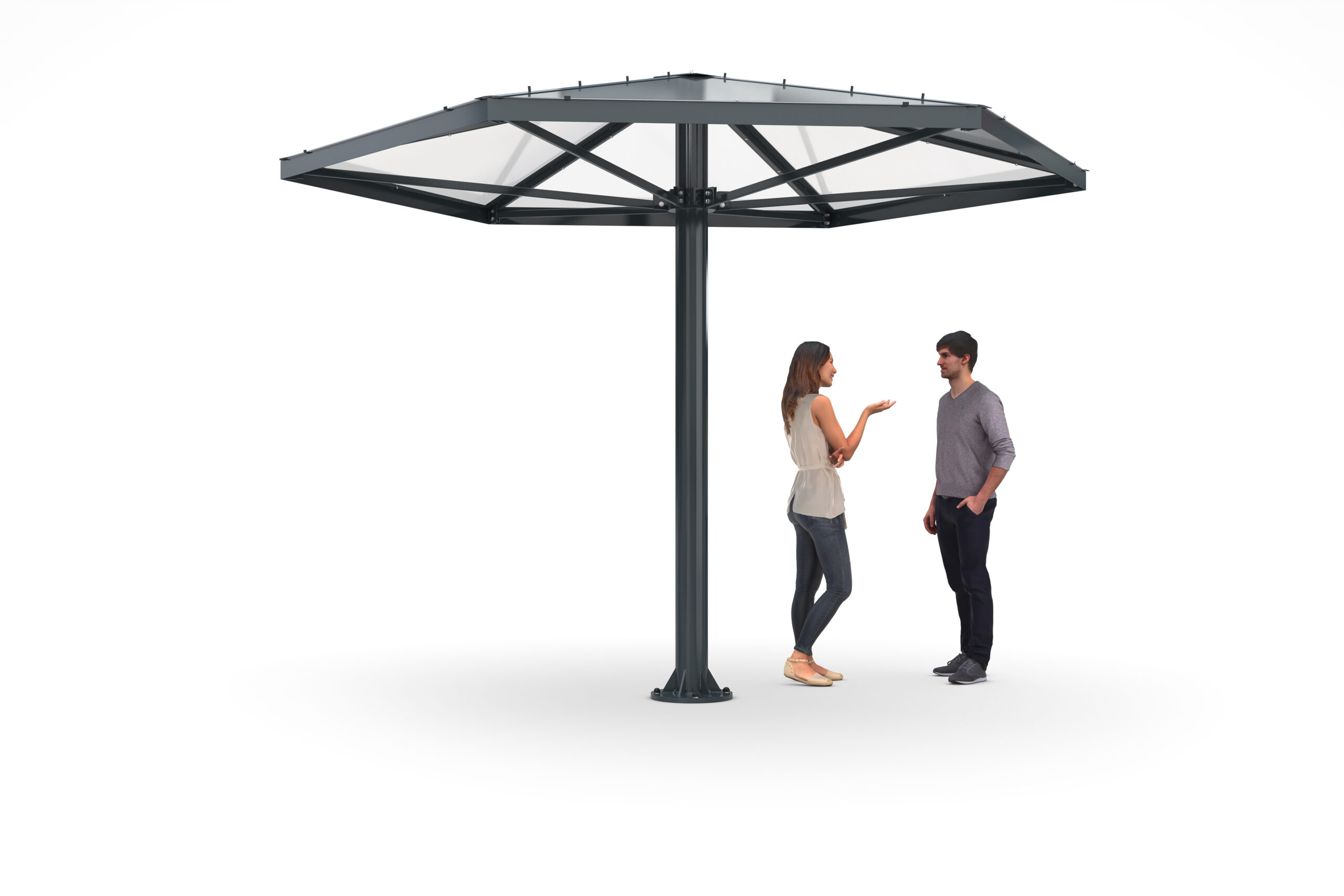 - Metalinės stoginės – patvarios ir atsparios įvairioms oro sąlygoms. Jos dažnai naudojamos komerciniais tikslais arba kai reikia papildomos apsaugos automobiliams. Dažniausiai gaminamos iš aliuminio ar cinkuoto plieno.