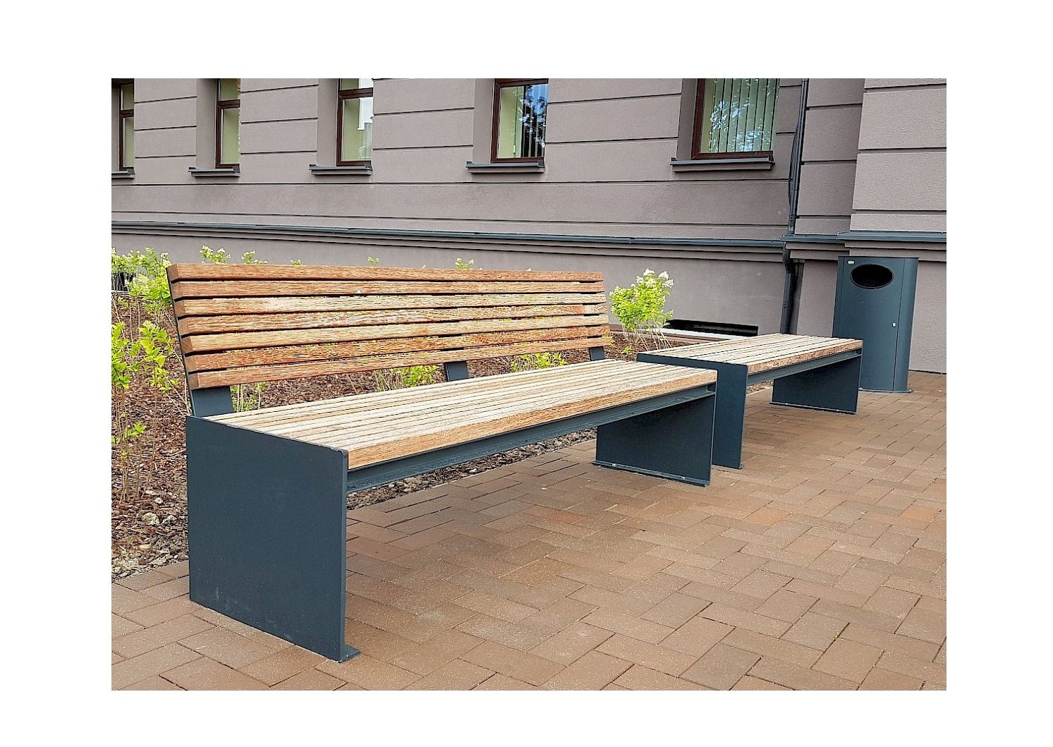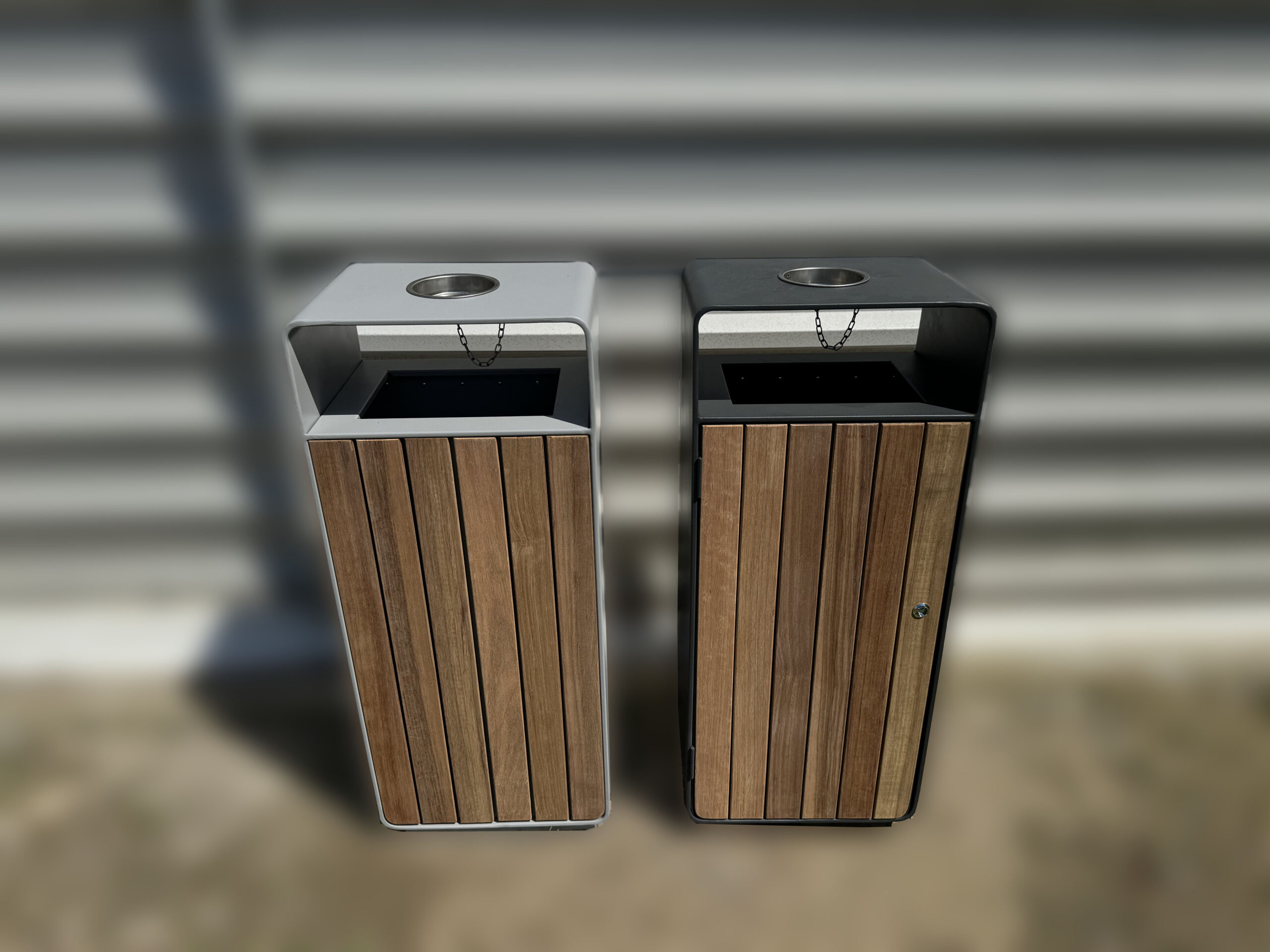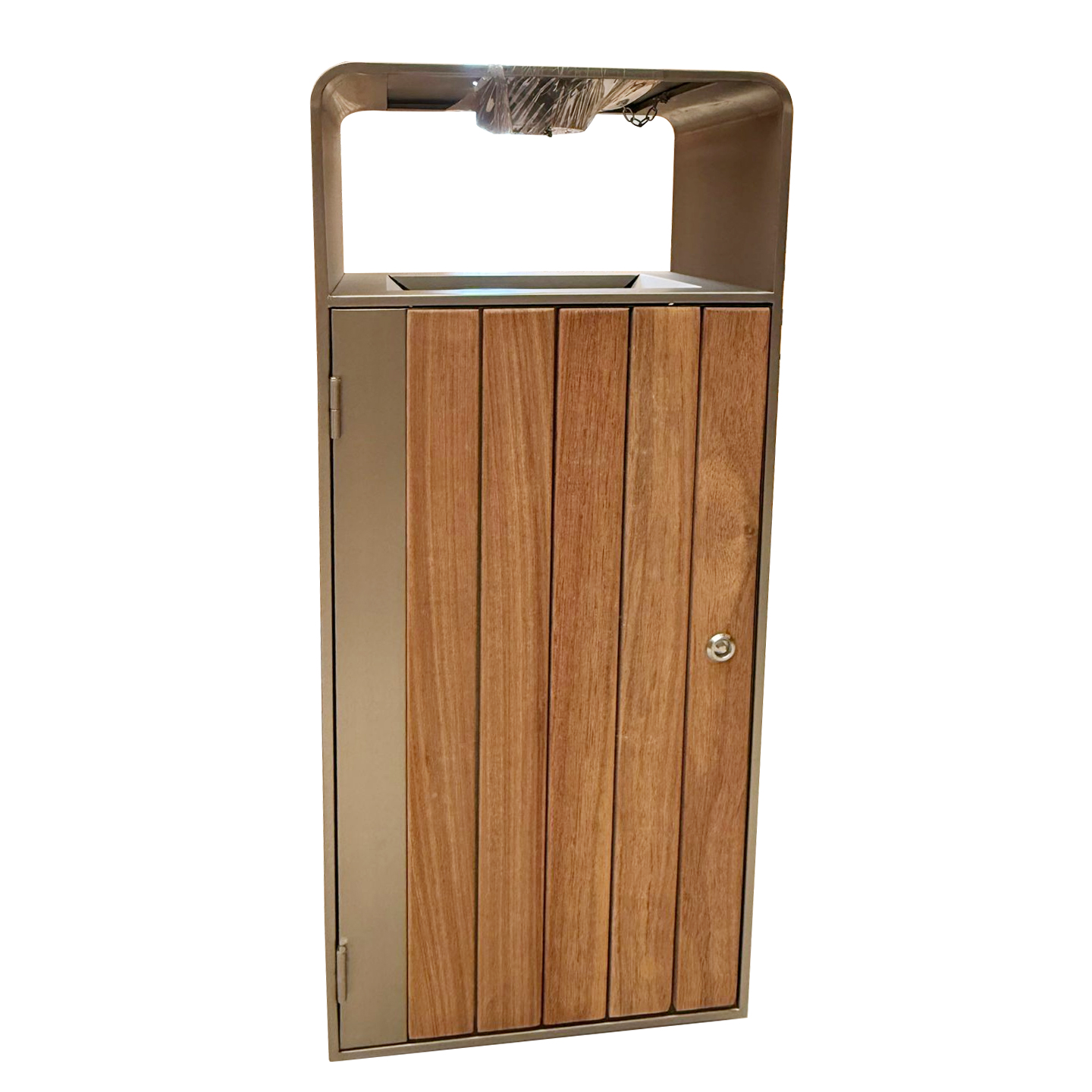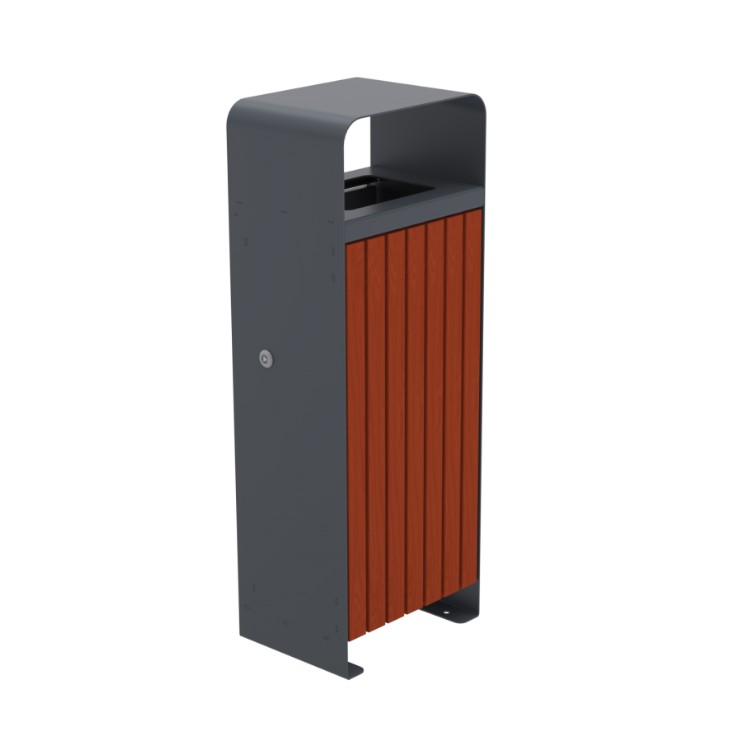 Āra atkritumu kaste su tropinio kietmedžio apdaila ir stogeliu E20-RAL7016