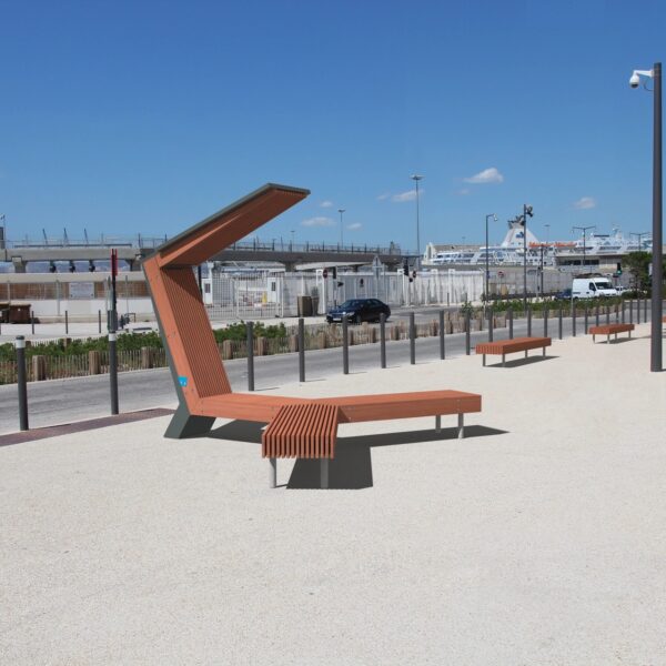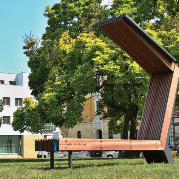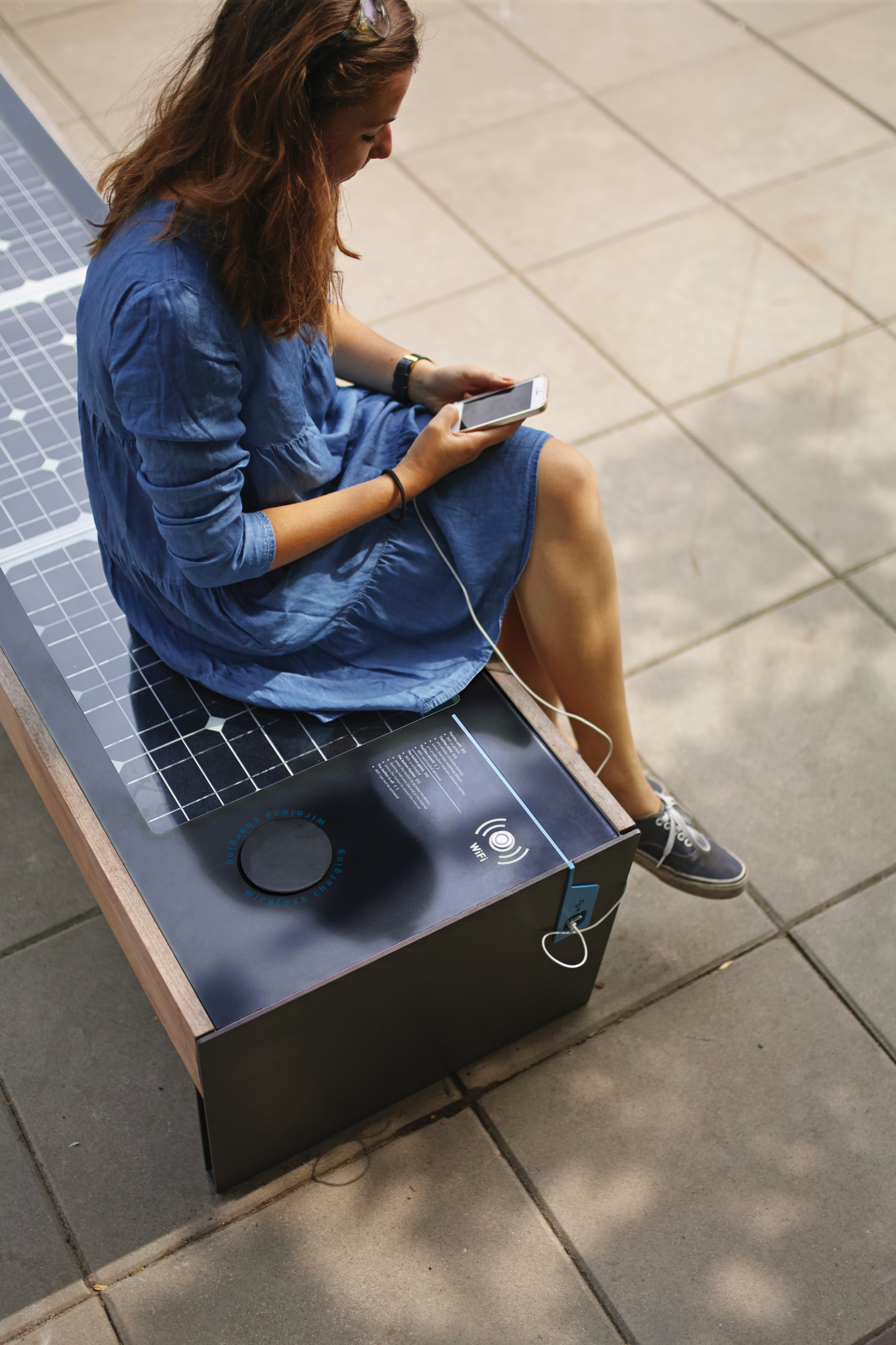 Cinkuoto plieno konstrukcija padengta milteliniu būdu. Sėdimoji dalis – apsauginiu stiklu dengtas fotovoltinis skydelis, kuris tiekia energiją USB lizdui ir indukciniam įkrovimui. Papildoma opcija: su “Wi-Fi” signalo siųstuvu, kurio veikimo spindulys siekia 100 metrų.