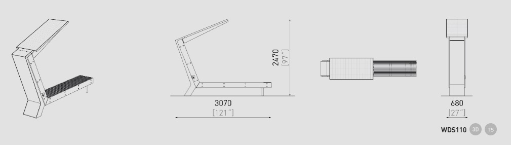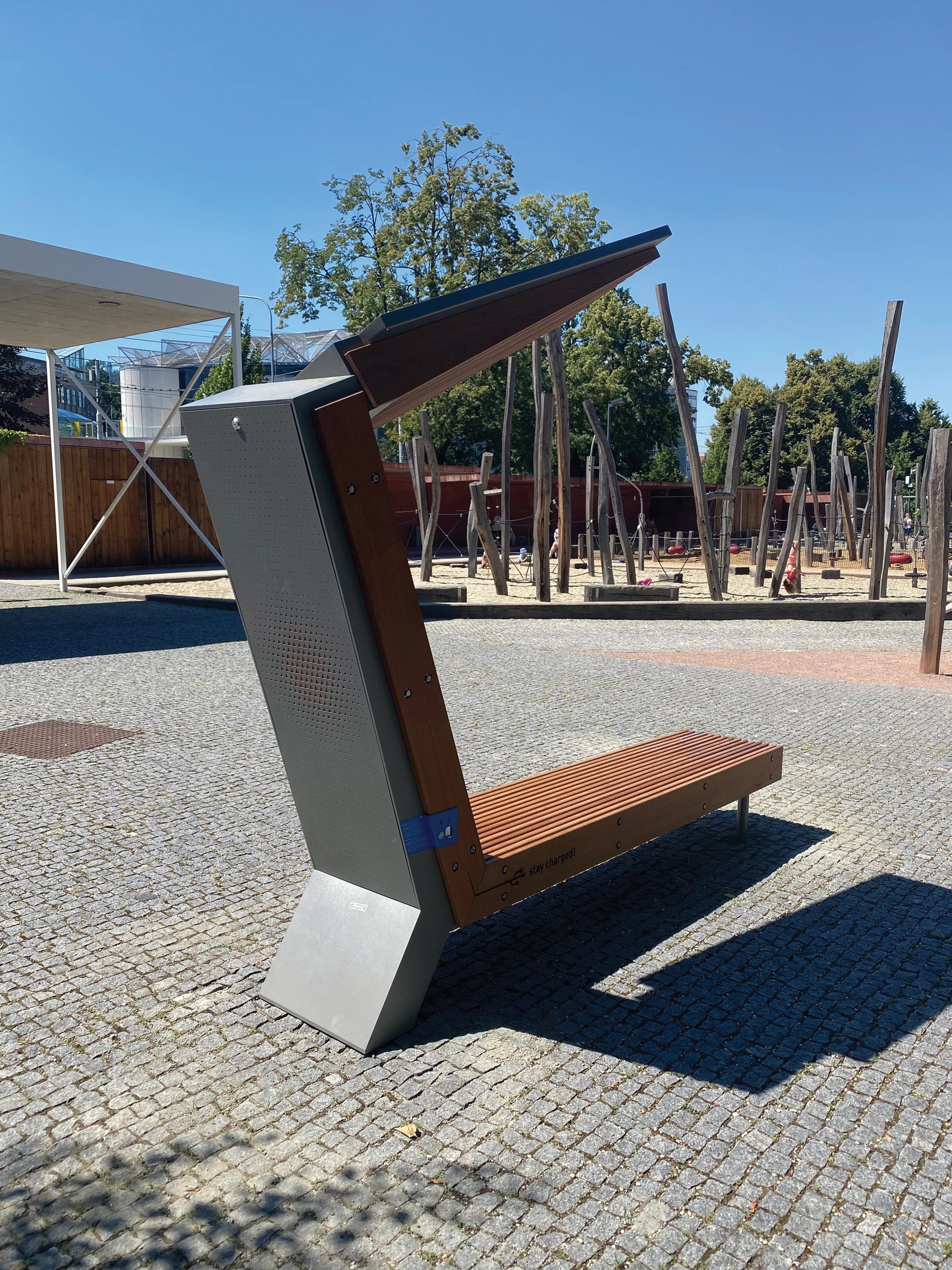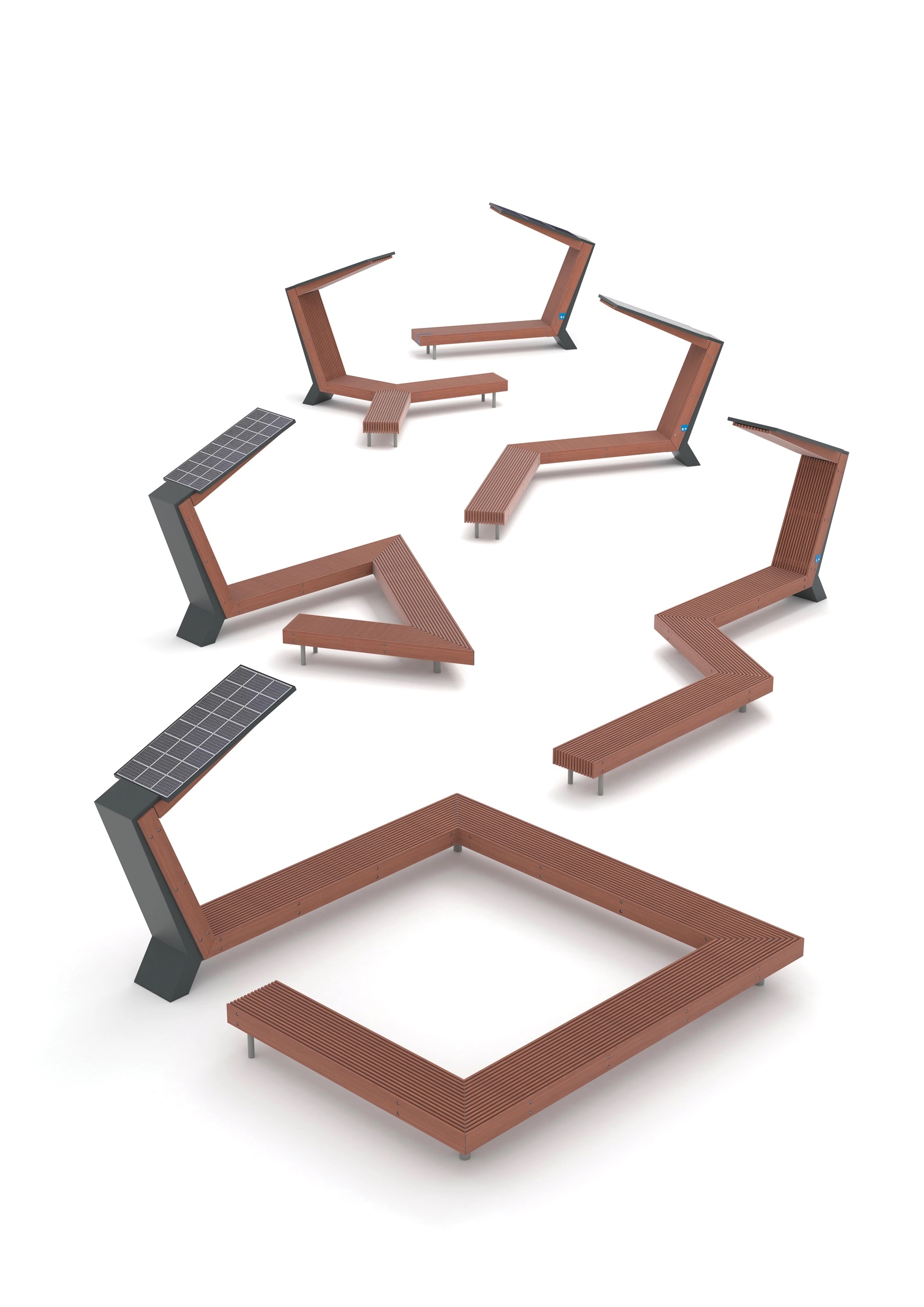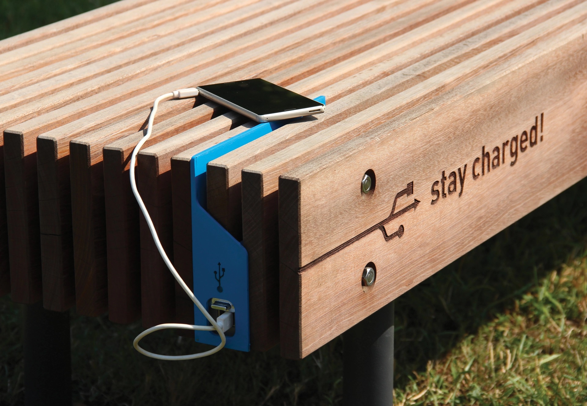 Suolelis turi reguliuojamą 140 Wp saulės bateriją ir du dvigubus USB lizdus, arba 100 metrų atstumu veikiantį “Wi-Fi” signalo siųstuvą. Mediena – kietmedis (jatoba).